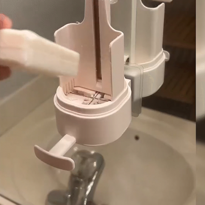 „Exact ce aveam nevoie! Modern, practic și ușor de folosit. Îți dozează cantitatea potrivită de pastă și nu mai rămâne murdărie pe chiuvetă. Îl recomand oricui vrea o baie mai organizată și un plus de confort.”