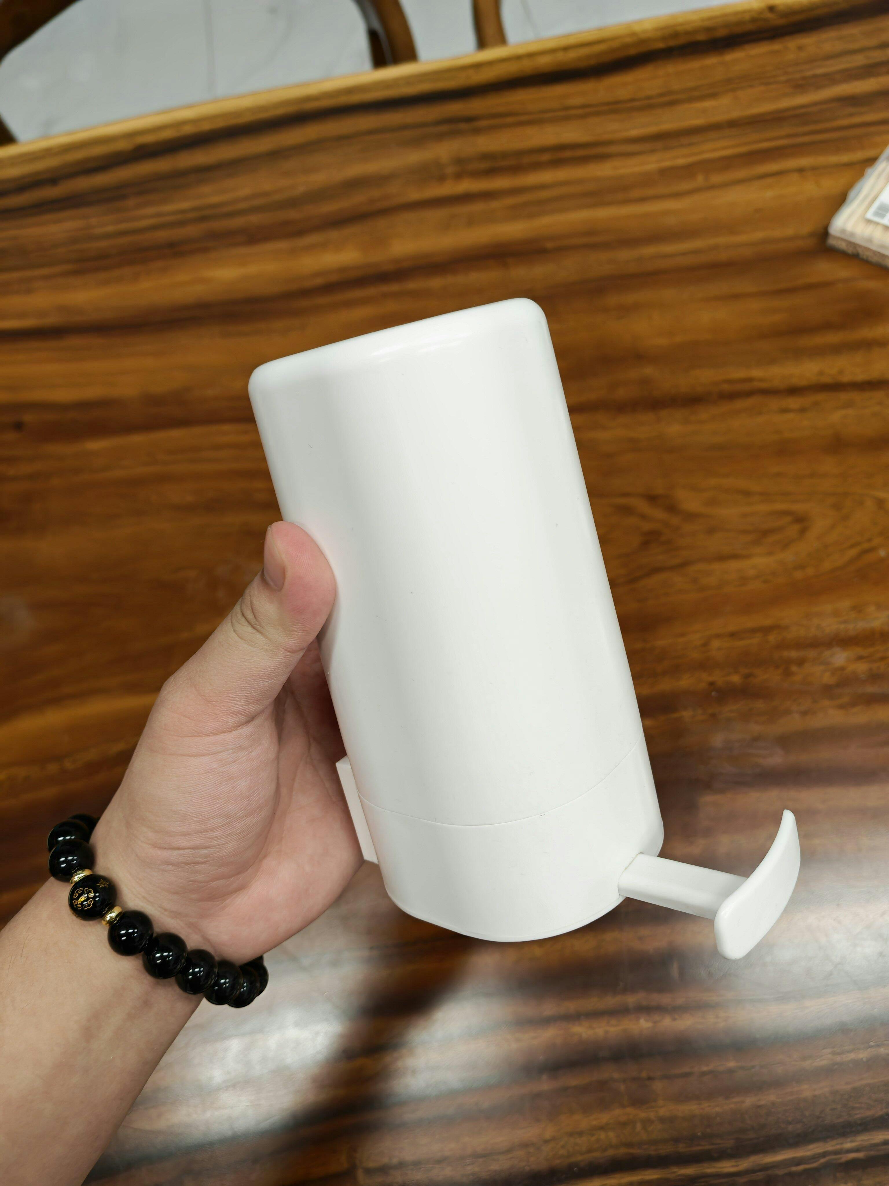 Tot ce trebuie să faci este să așezi săpunul în recipient și să rotești ușor. În câteva secunde ai spumă gata de folosit, fără efort și fără complicații.