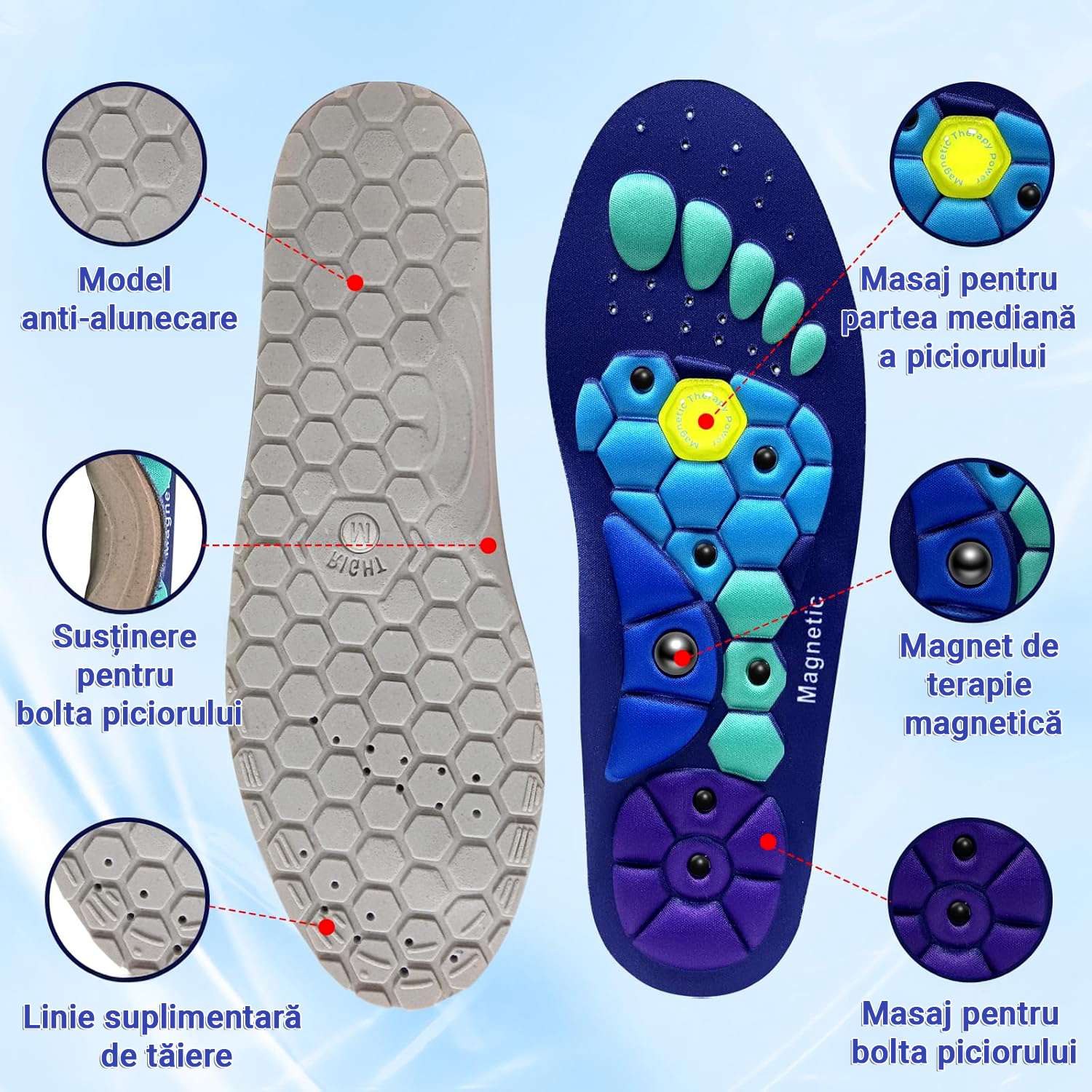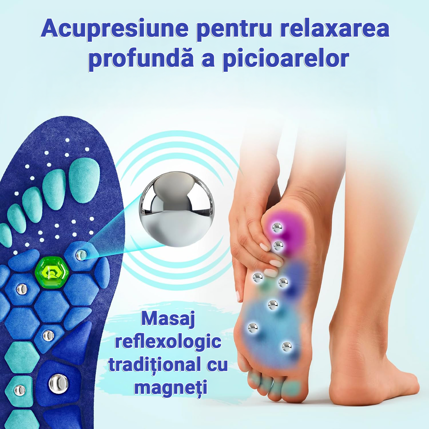 Descoperă tălpicii magnetici cu acupresiune, inspirați din reflexologia japoneză, care transformă fiecare pas într-un masaj plăcut. Stimularea punctelor de presiune și magneții integrați reduc tensiunea, oboseala și durerile, oferindu-ți picioare mai ușoare și un mers mai confortabil.